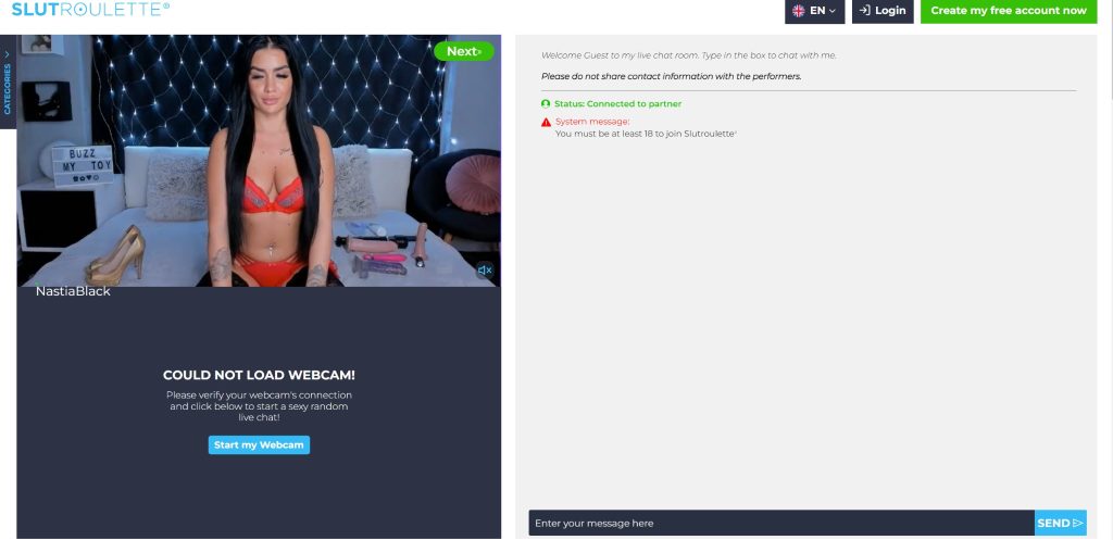 Slutroulette ist eine beliebte Sex-Chat-Site für Erwachsene, die seit vielen Jahren auf dem Markt ist. Sie können jederzeit eintreten und sicher sein, dass SlutRoulette voller ungezogener Mädchen ist, die bereit sind, alle Ihre Bedürfnisse zu erfüllen. Sie werden immer sicher sein, Mädchen zu finden, deren Webcam Sie einschalten. Darüber hinaus treffen Sie auf SlutRoulette.com andere Perverse aus der ganzen Welt mit einer breiten Palette von Absichten und Aufregung, die bereit sind zu explodieren. Sehen wir uns einige seiner Vor- und Nachteile an. SlutRoulette.com ist für Männer gedacht, um hauptsächlich sehr heiße Mädchen zu sehen. Ihr Name ist „Slut“ und „Roulette“ bedeutet „Storch“ von „Slut“, was bedeutet, egal wie die Dinge laufen: Sie werden immer echte Schlampen treffen.