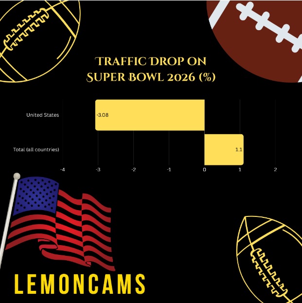 Quite interestingly, the Super Bowl, which is the United States cultural titan, created a very minimal impact. As per Lemoncams data, there was only a -3.08% decline in the US traffic during last year’s game. This kind of minor contraction suggests that a limited evening timeframe of this event, together with a rise in mobile browsing, allows audiences to multitask.