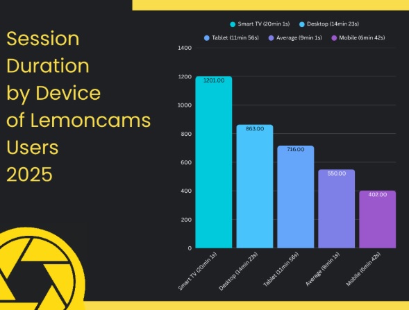 Smart TVs, as per Lemoncams data, lead in deeper engagement, at around twenty minutes. It suggests a way more intentional and relaxed viewing experience at home. Contrastingly, mobile majority engages in quick and more spontaneous sessions—averaging around 6 minutes, 42 seconds. It is perfectly suited for private and on-the-go moments.